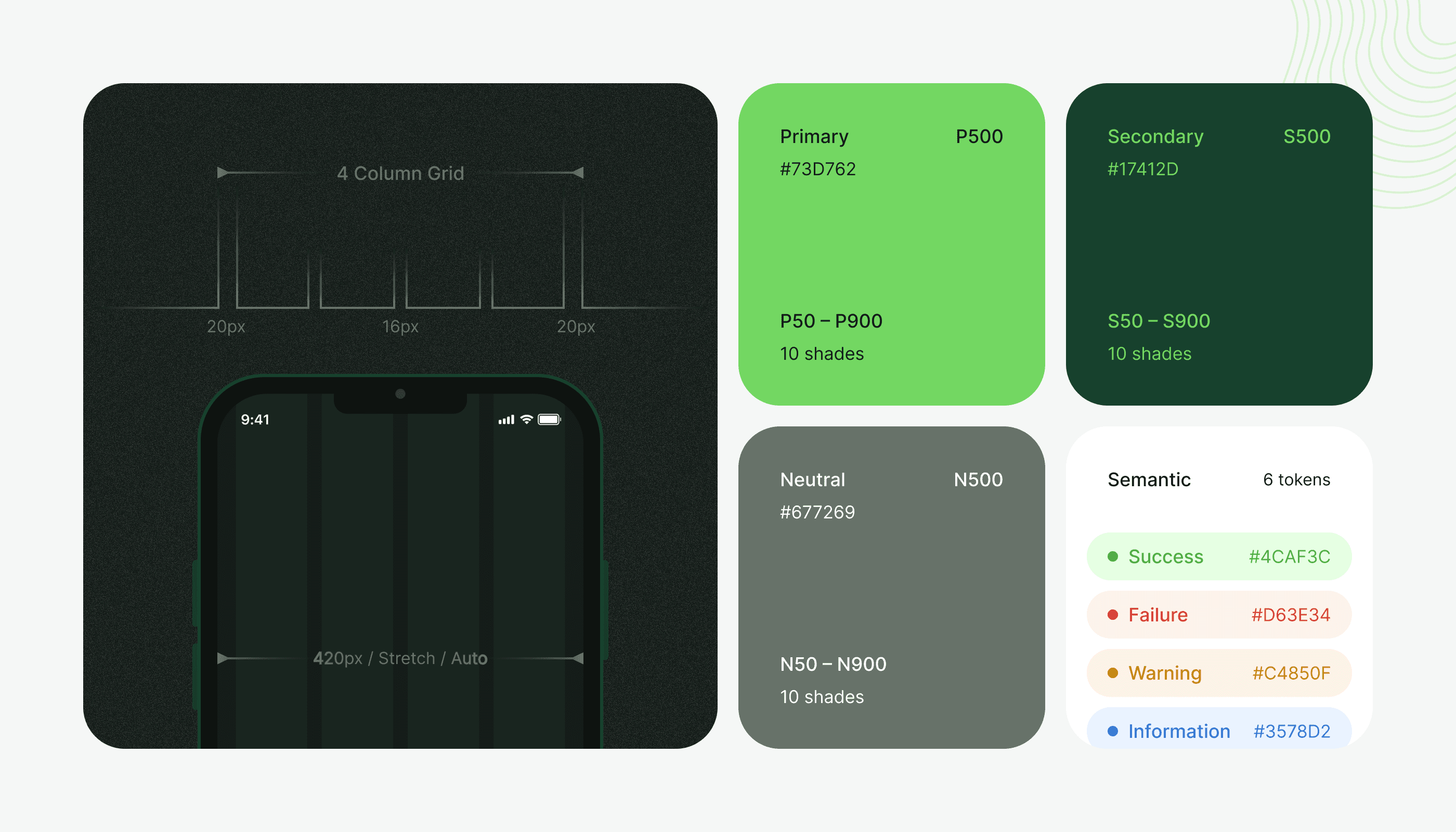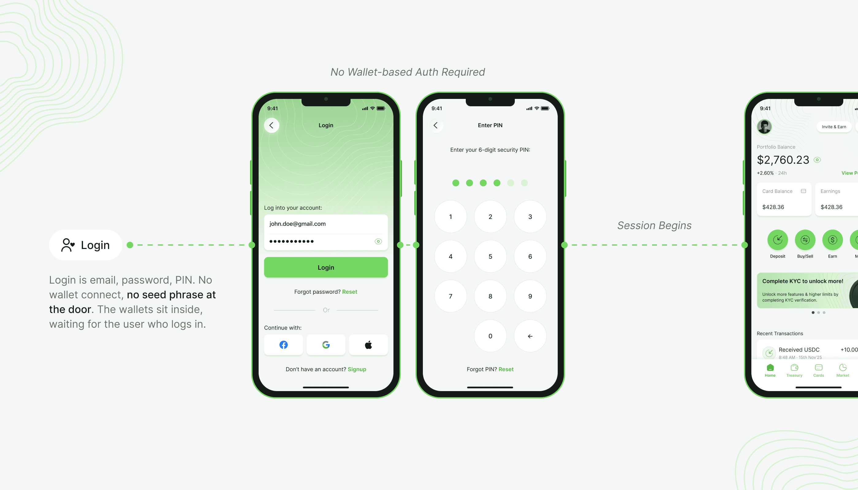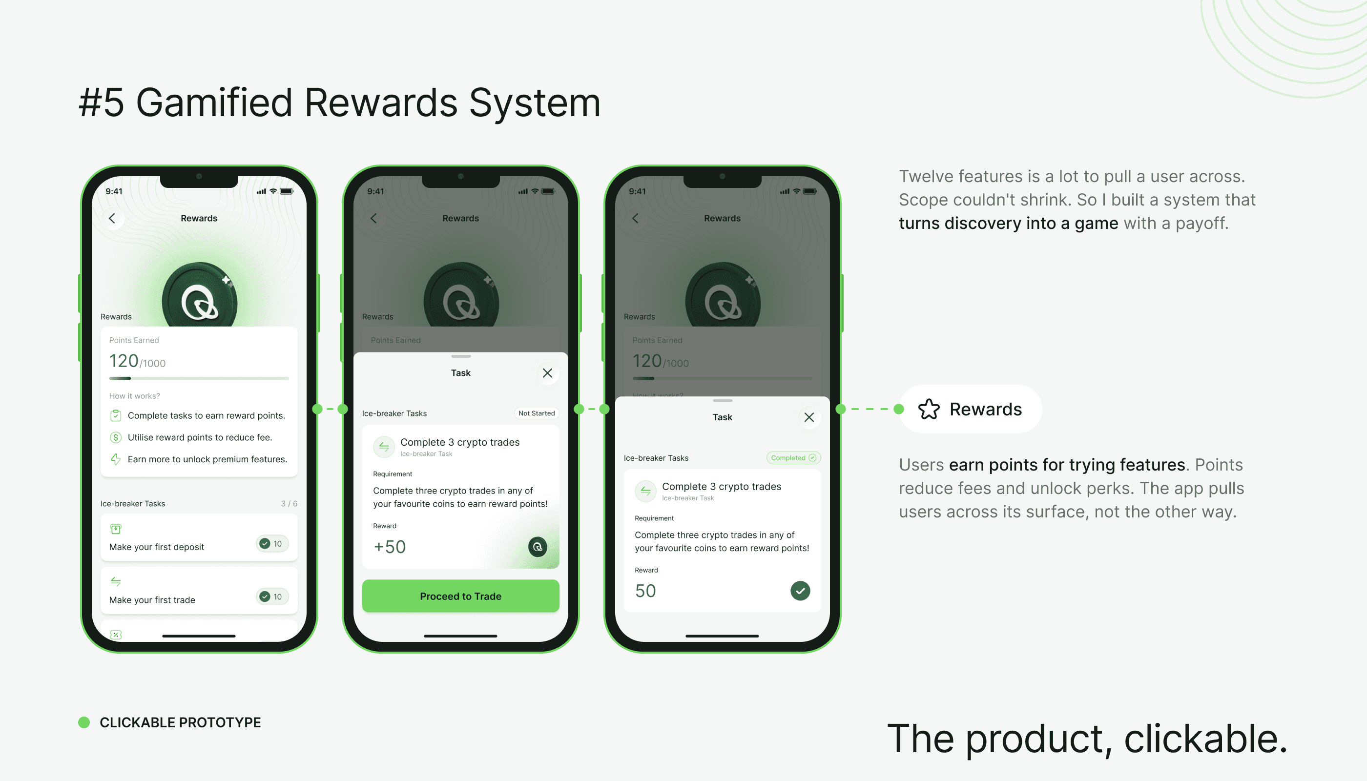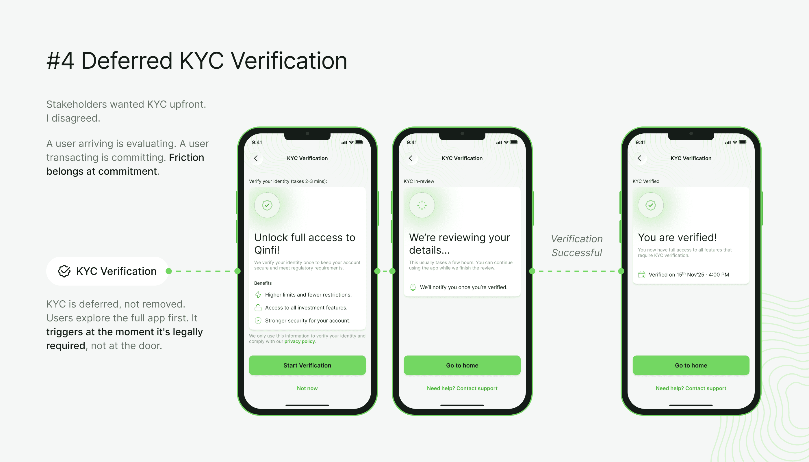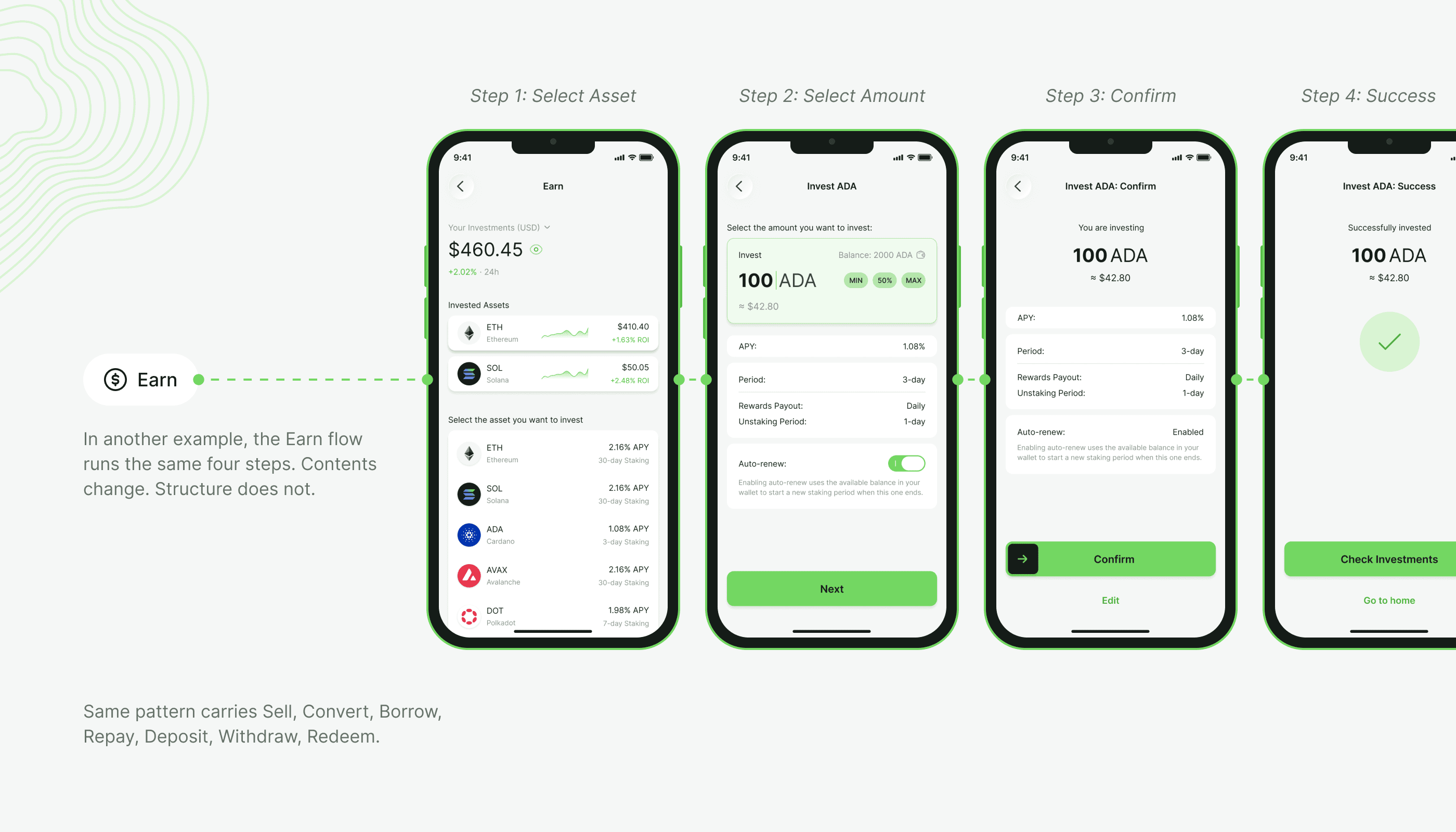 Designed at the protocol layer: 95% screens approved at first dev review. Chain logic was baked in the spec.
